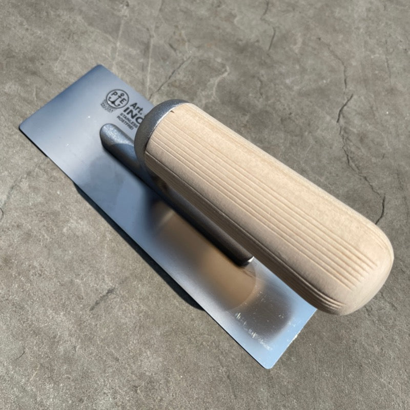 Paste of slaked lime mixed with selected grey, dark grey, and pink & white marble grains (300 microns), suitable for semigloss finishes with a Marmorino effect.